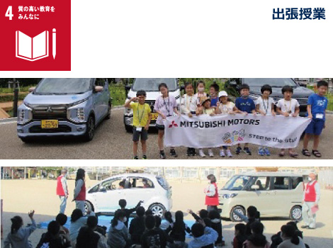 三菱自動車と連携し「自動車と環境」を主なテーマにした、様々な体験学習を行っています。